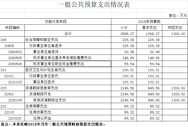 2018年一般公共预算财政拨款收入2568.27万元,一般公共预算财政拨款支出2568.27万元,比2017年减少919.47万元。其中:基本支出1268.27万元,比2017年减少763.47万元,主要原因:一是机关事业单位养老保险改革后,我院退休人员养老保险由社保基金统一发放,不再纳入部门预算;二是在职人员人数较2017年减少5人。这部分资金主要用于保障我院在职人员工资福利及社会保险缴费,保障部门正常运转的各项商品服务支出。项目支出1300万元,比2017年减少156万元,主要原因是我院2018年实验仪器设备购置有所减少,主要用于保障我院科技基础平台运行、非常规天然气勘探开发技术支撑经费和实验仪器设备购置等重点工作。
