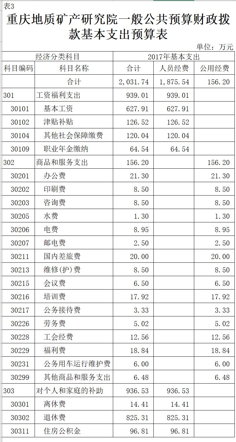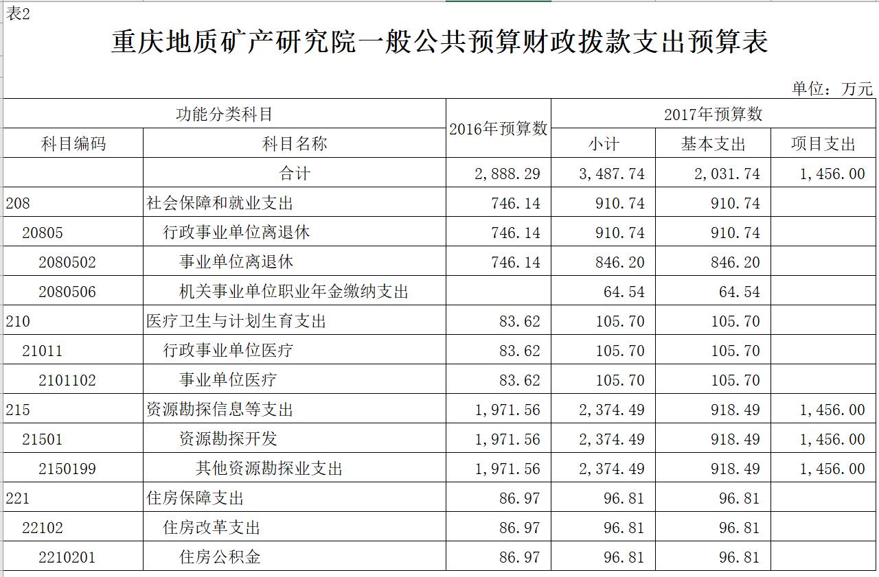 重庆地质矿产研究院2017年部门预算情况说明
