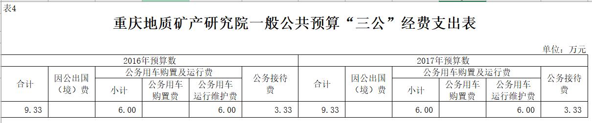2017年“三公”经费预算 9.33 万元,与2016年持平。其中;公务接待费3.33万元,较2016年无变化;公务用车运行维护费 6 万元,较2016年无变化。